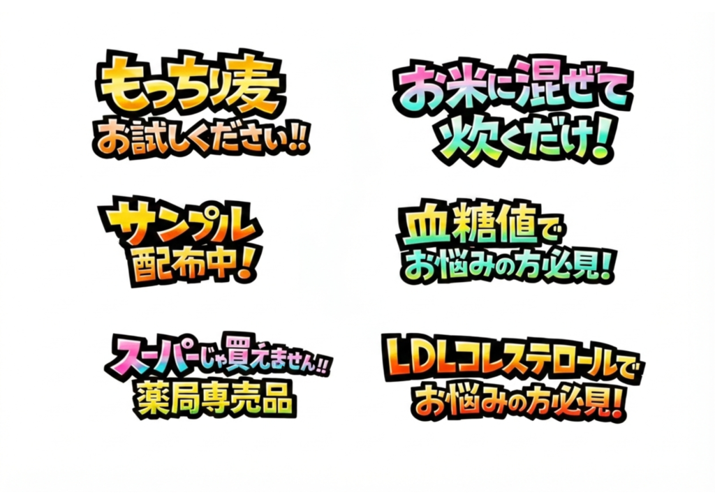 本コンテンツは、もっちり麦販売店様に限り、店頭での販売促進および販促装飾を目的とした使用に限って許諾されるものとし、当該目的を超えた利用、第三者への提供、無断転載、複製、改変、二次利用等を固く禁じます。