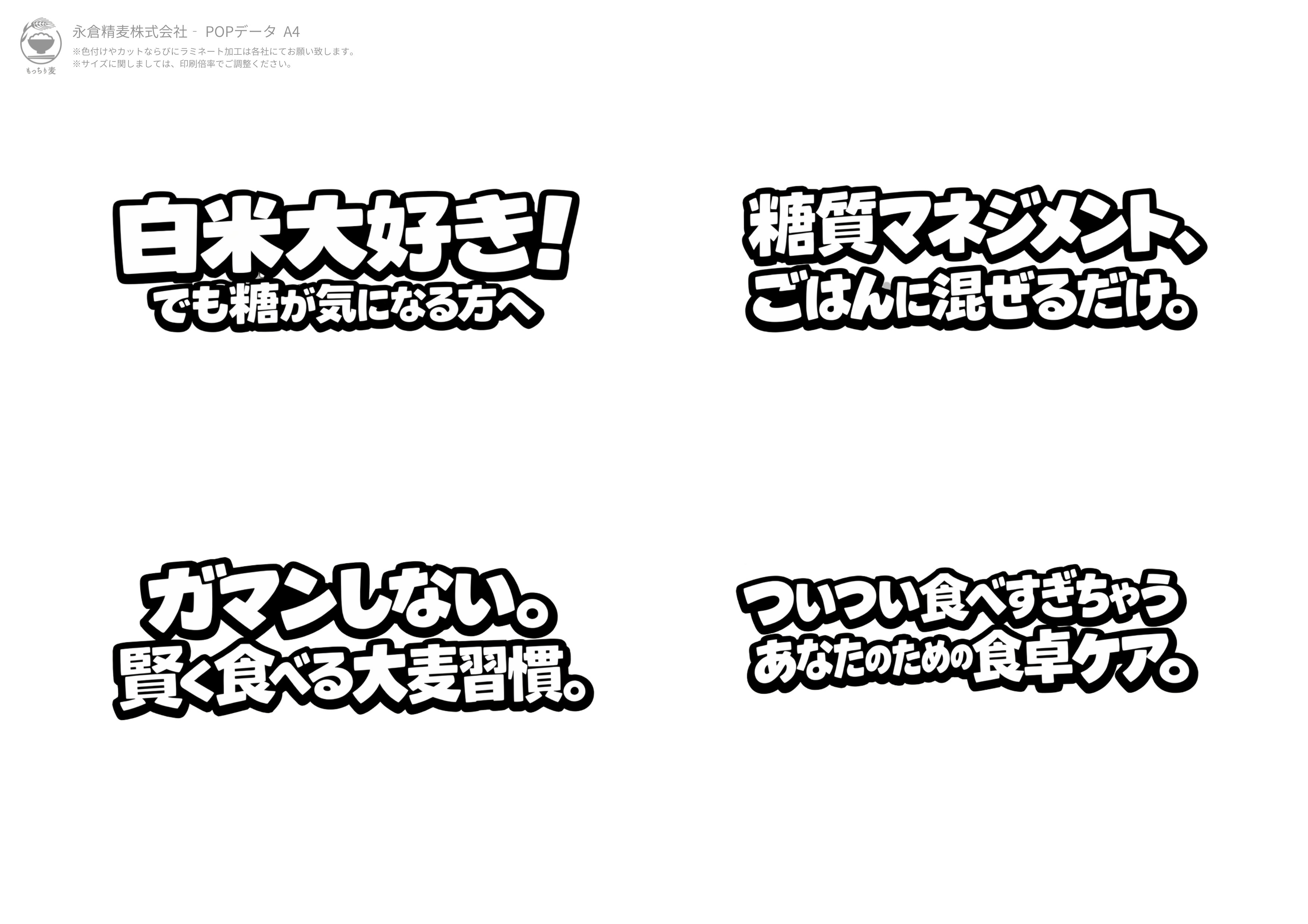 もっちり麦販売店様に限り、店頭販促・販売促進の目的においてご自由にご活用ください。